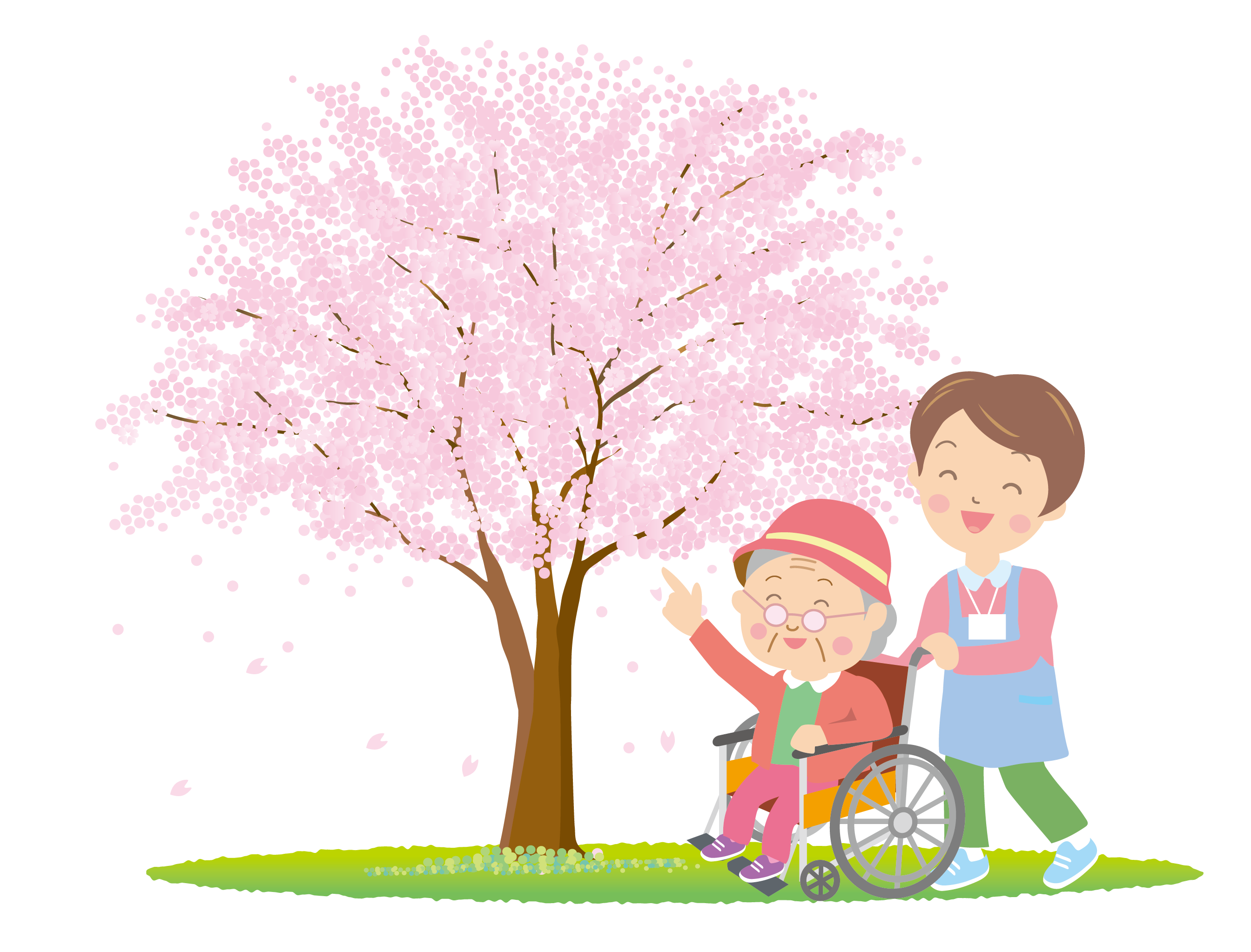 ご家族との会話、桜を見ながら過ごす静かな時間。